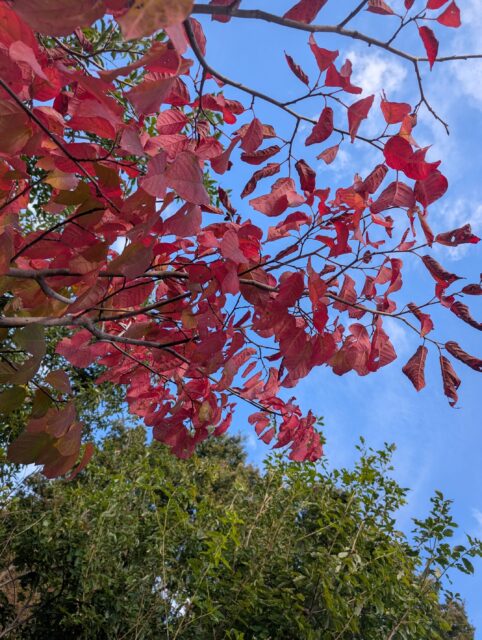 シラキは大ぶりな葉が真っ赤になるので見ごたえのある紅葉になります。