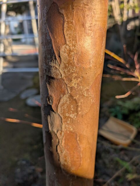 ヒメシャラのオレンジの幹が冬の光をあびていました。