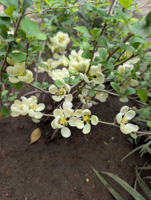 3月に完成した庭にクサボケを植えました。